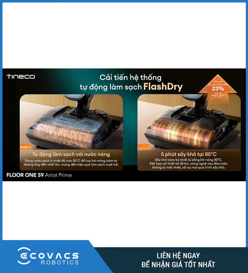 Tineco Floor One S9 Artist Prime được trang bị công nghệ FlashDry tiên tiến, cho phép: