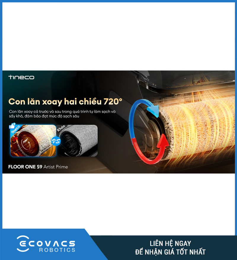 Tineco Floor One S9 Artist Prime được trang bị con lăn xoay hai chiều, giúp: