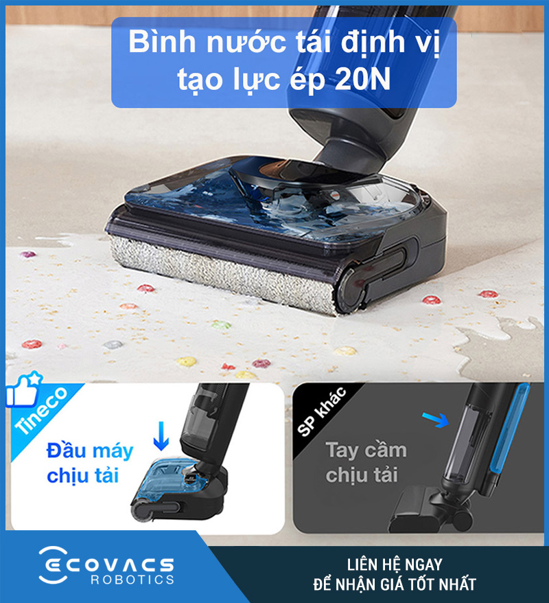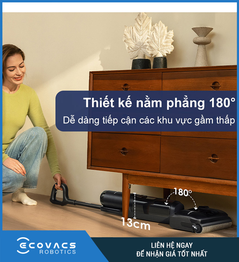 Đây là một lợi thế vượt trội so với nhiều dòng máy hút bụi lau sàn cứng nhắc khác trên thị trường, giúp người dùng làm sạch toàn diện mọi ngóc ngách trong nhà mà không cần cúi người hay di chuyển nội thất.