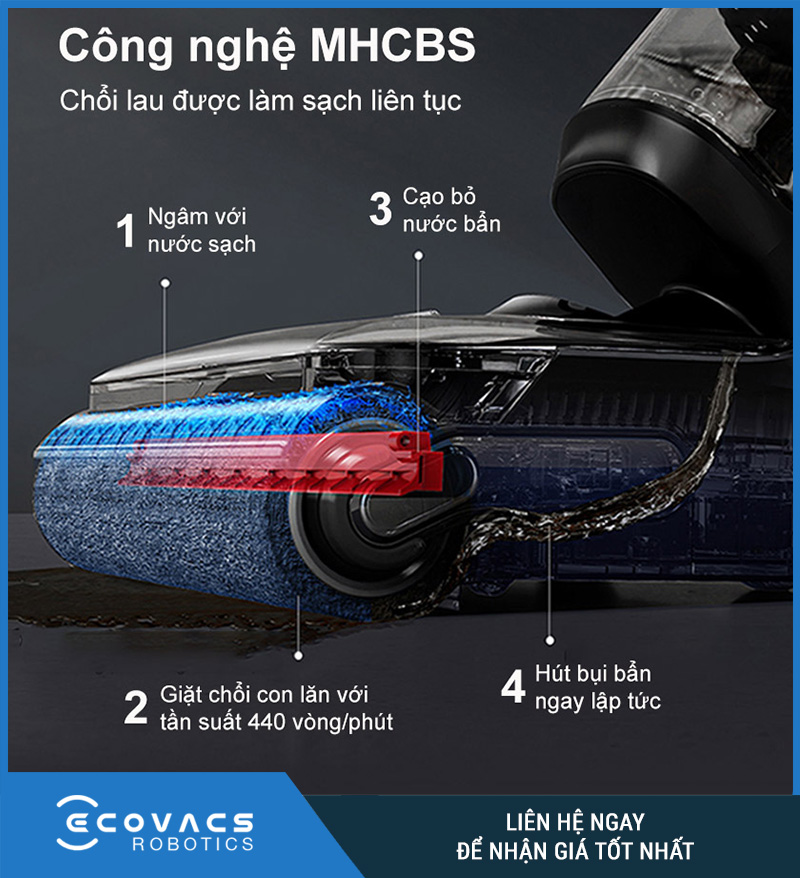 Trong quá trình hút bụi – lau sàn, chổi lăn thường bị bám bẩn hoặc vón cục, ảnh hưởng đến hiệu suất làm sạch. Hiểu được điều đó, Tineco đã trang bị cho FLOOR ONE S6 Stretch Extreme công nghệ MHCBS (Motorized Head Cleaning Brush System), cho phép chổi lăn tự làm sạch liên tục ngay trong khi hoạt động.