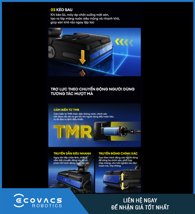 Một ưu điểm rất đáng giá trên mẫu máy này là khả năng hỗ trợ di chuyển thông minh. Tineco cho biết sản phẩm tích hợp Tineco SmoothDrive, tức AI trợ lực điều hướng và làm sạch 360°, kết hợp với thiết kế xoay 90° chuyển động linh hoạt trái phải.