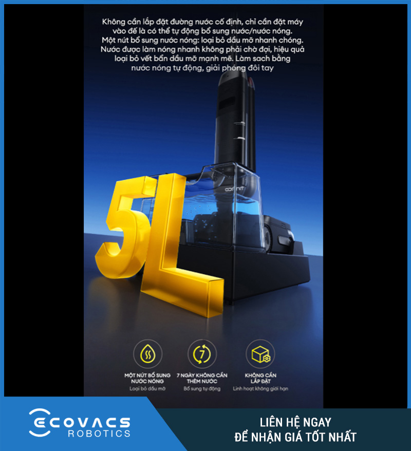 Bình nước 5L tích hợp cấp nước nóng – Tăng hiệu quả làm sạch, giảm thao tác thủ công