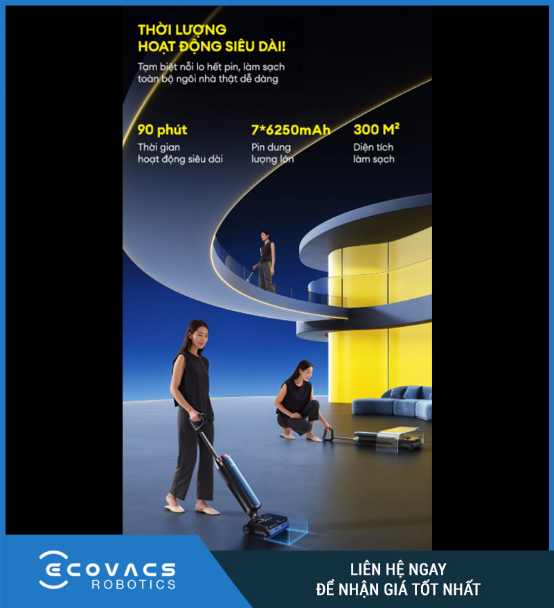 Với nhu cầu sử dụng thực tế, pin bền và thời lượng dài là yếu tố rất quan trọng. Nó giúp người dùng có thể làm sạch nhiều phòng liên tiếp mà không phải ngắt quãng giữa chừng, đặc biệt phù hợp với nhà phố, căn hộ rộng hoặc gia đình có nhu cầu vệ sinh sàn thường xuyên.