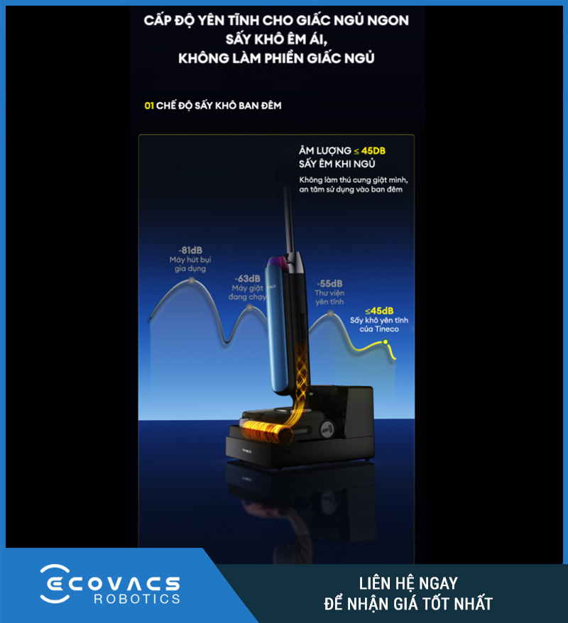 Điểm khác biệt của FLOOR ONE STATION S9 Artist nằm ở hệ thống sấy được hãng phát triển theo hướng nhanh, sạch và hạn chế tiếng ồn. Trên trang thông số, Tineco cho biết máy hỗ trợ hai chế độ sấy, gồm sấy khô nhanh bằng khí nóng 85°C trong 5 phút và sấy khô yên tĩnh, đồng thời độ ồn ở chế độ sấy yên tĩnh ở mức ≤45dB.
