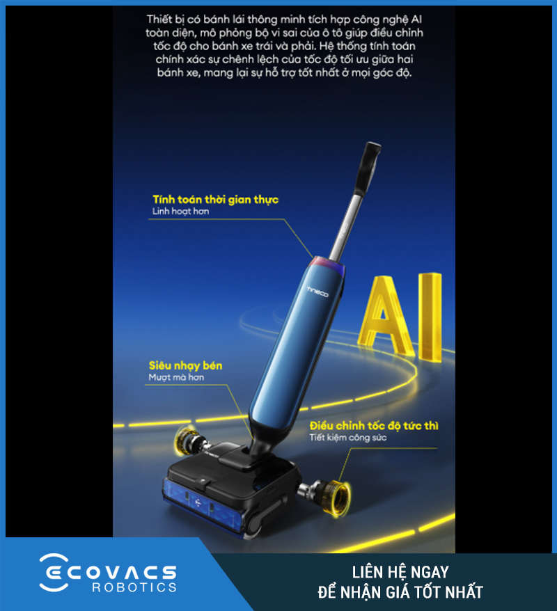 Trên trang sản phẩm, Tineco giới thiệu SmoothDrive là công nghệ AI trợ lực điều hướng và làm sạch 360°. Đây là một trong những điểm nhấn công nghệ quan trọng, giúp thiết bị không chỉ làm sạch mạnh mà còn vận hành thông minh và linh hoạt hơn khi di chuyển quanh đồ nội thất.