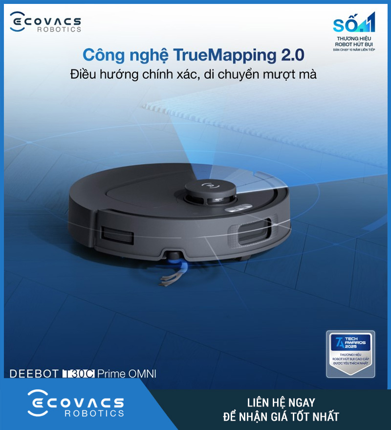 TrueMapping 2.0 là công nghệ lập bản đồ giúp robot nhận diện không gian và tối ưu lộ trình làm sạch. Trang sản phẩm giới thiệu đây là nền tảng quan trọng để T30C Prime Omni có thể quét nhà nhanh, hiểu bố cục tốt và di chuyển có chiến lược hơn thay vì chạy ngẫu nhiên.