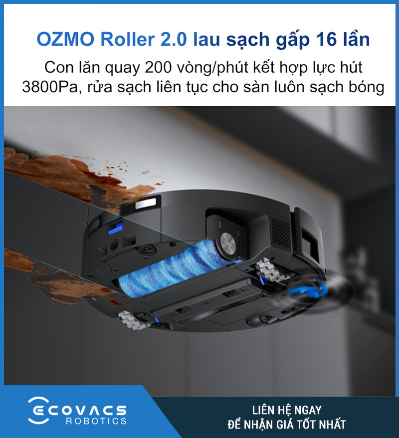 Không chỉ hút bụi mạnh mẽ, Ecovacs Deebot X11 Omni 2026 còn sở hữu hệ thống Ozmo Roller 2.0 – công nghệ lau sàn tiên tiến nhất hiện nay.