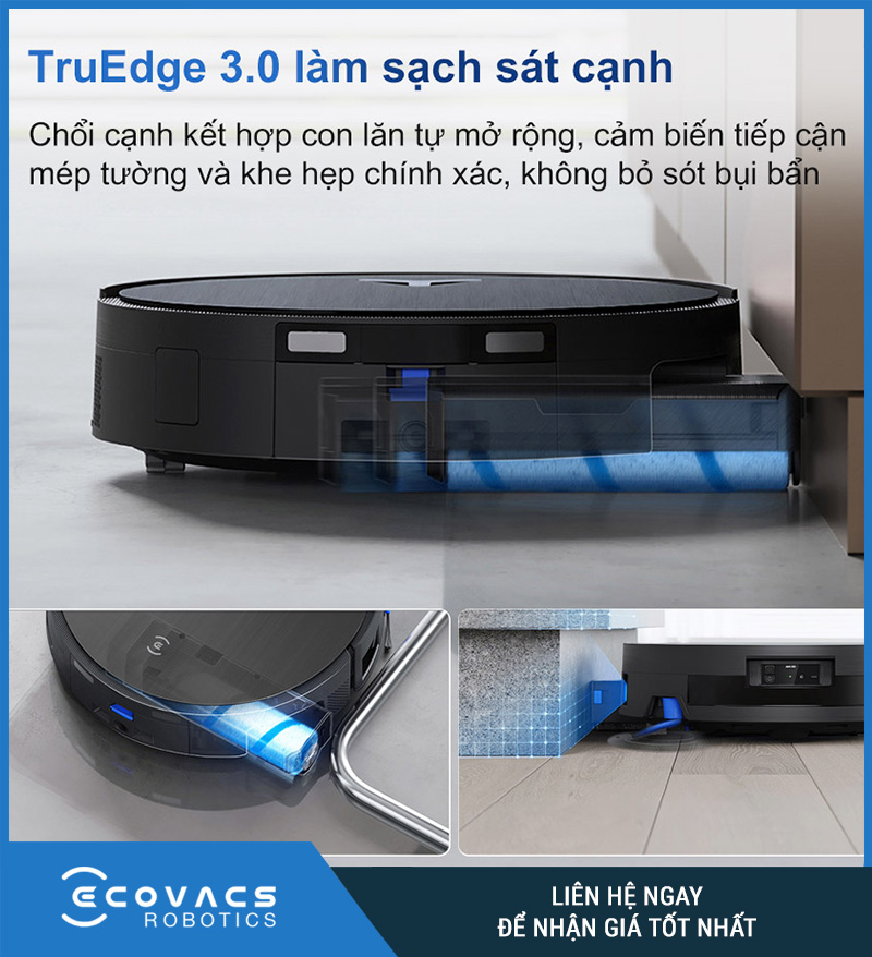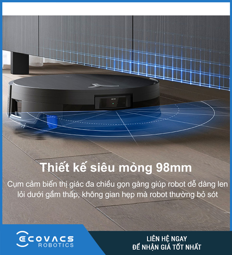Nhờ thiết kế tối ưu, robot có thể di chuyển linh hoạt dưới gầm bàn ghế, sát tường mà vẫn giữ được hiệu quả làm sạch. Đây chính là sự kết hợp hoàn hảo giữa công nghệ tiên tiến và gu thẩm mỹ tinh tế mà Ecovacs muốn đem lại.