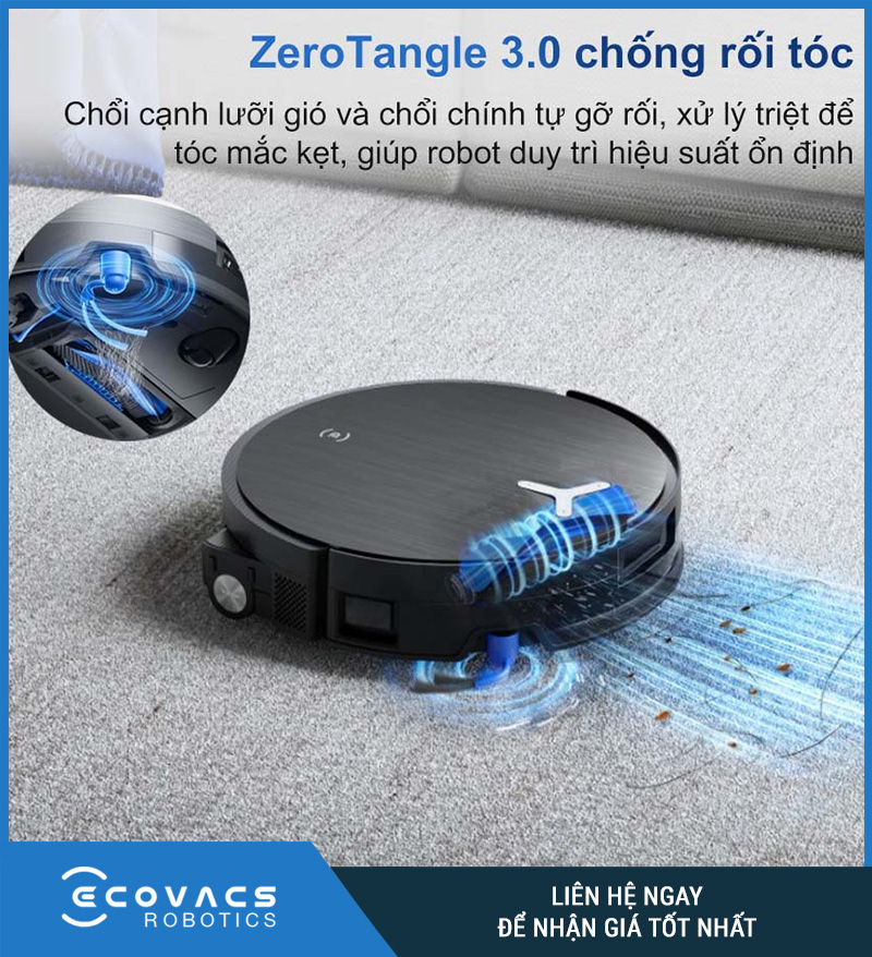 Ngoài ra, công nghệ ZeroTangle 3.0 với thiết kế chổi phụ kiểu “wind-blade” giúp hạn chế tình trạng rối tóc, lông thú. Đây là giải pháp tối ưu cho các gia đình có nuôi chó mèo hoặc phụ nữ tóc dài – vốn là “ác mộng” với nhiều dòng robot hút bụi trước đây.