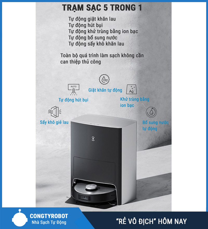 | Tính năng tự động hóa | Trạm OMNI toàn diện: đổ rác, giặt, sấy |